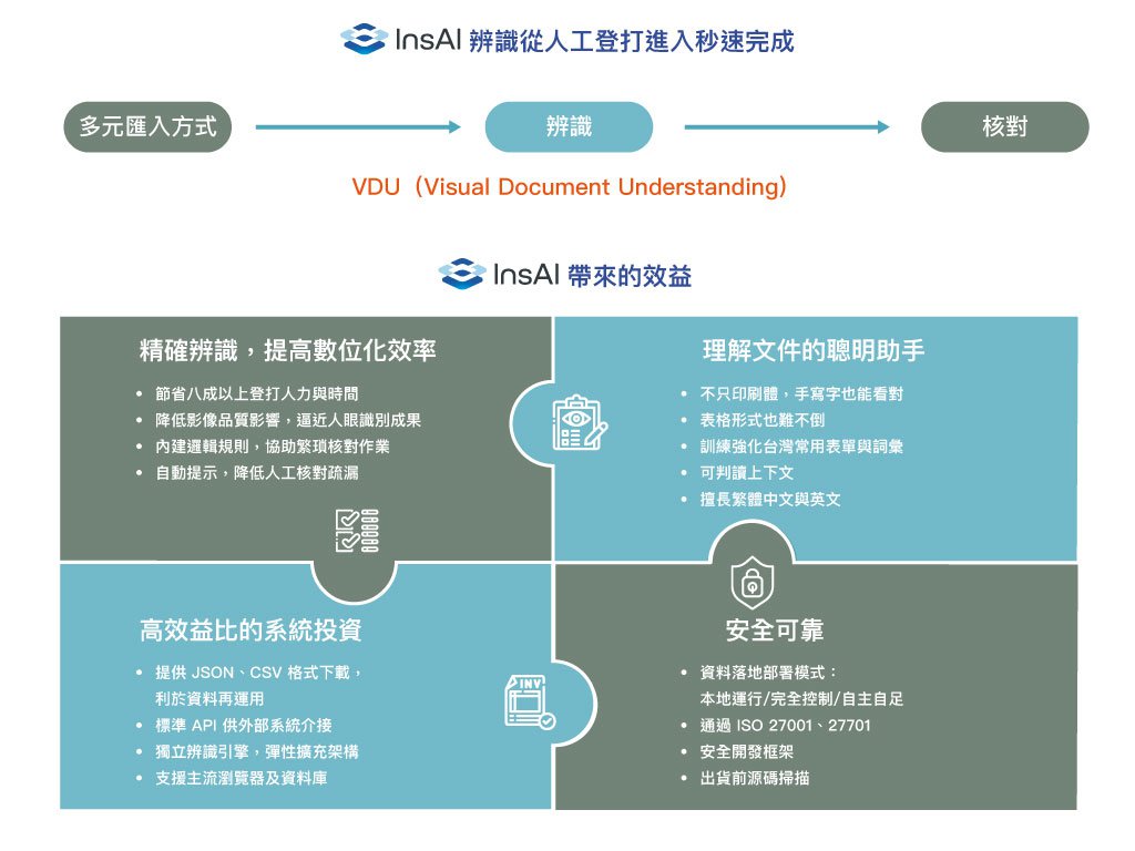 InsAI is an intelligent recognition system that allows AI to truly read and understand real-world documents. By utilizing GSS’s proprietary Computer Vision and patented multi-modal retrieval technologies, InsAI transforms document processing. We help enterprises eliminate repetitive manual entry and streamline verification, paving the way for paperless operations and ESG compliance.