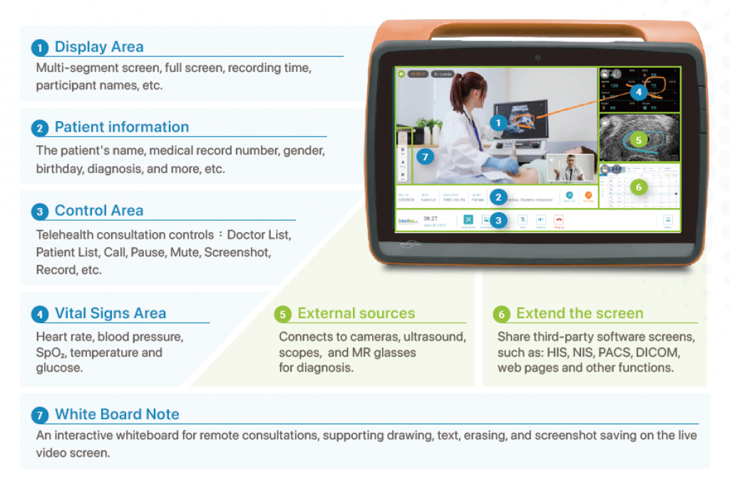 Telehealth solution is a deployable, end-to-end mobile care platform built for cross-site clinical delivery. Borderless Care extends professional healthcare to rural communities, offshore islands, and long-term care facilities. At its core, the IoMT Data Hub integrates medical-grade devices and seamlessly connects with HIS/EMR systems, enabling real-time cloud synchronization. This drives Clinical Efficiency by giving clinicians instant access to patient records and live vital data during video consultations—supporting faster, more accurate decision-making. Designed for the field, Ultimate Mobility adds military-grade protection with waterproof and shockproof durability, plus satellite connectivity to ensure reliable operation even in hard-to-reach areas.